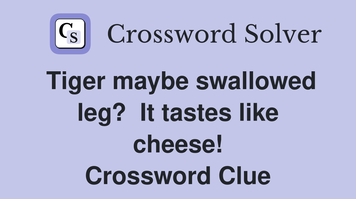 Tiger maybe swallowed leg? It tastes like cheese Crossword Clue