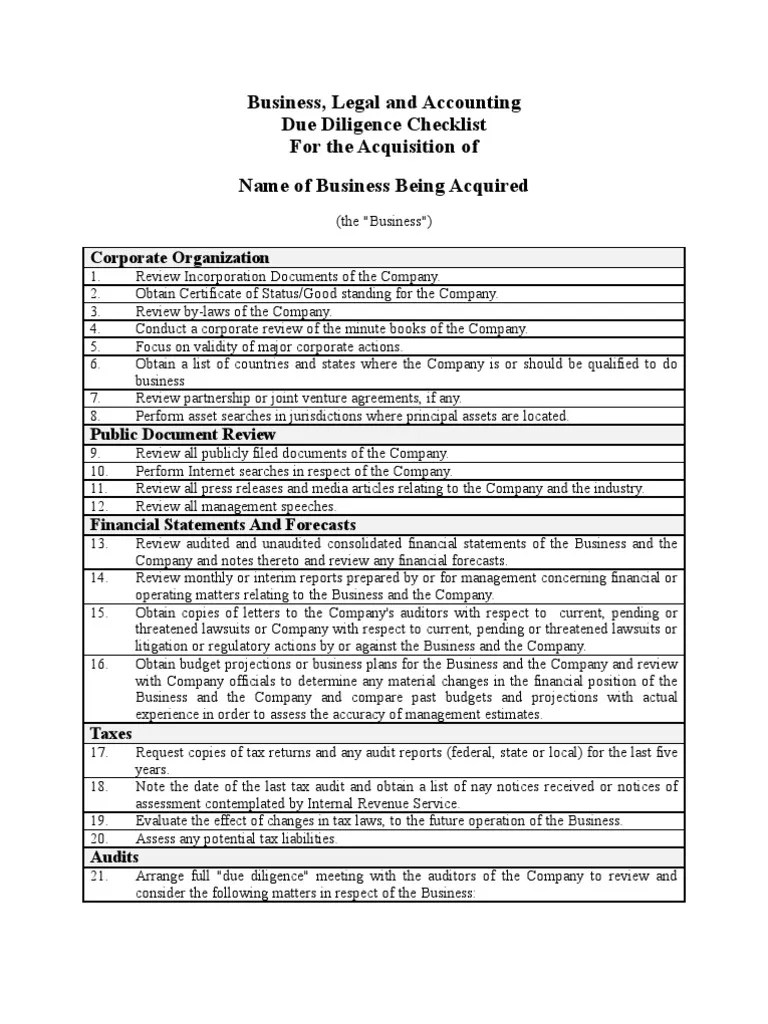 FREE 12 Sample Due Diligence Checklist Templates in PDF MS Word
