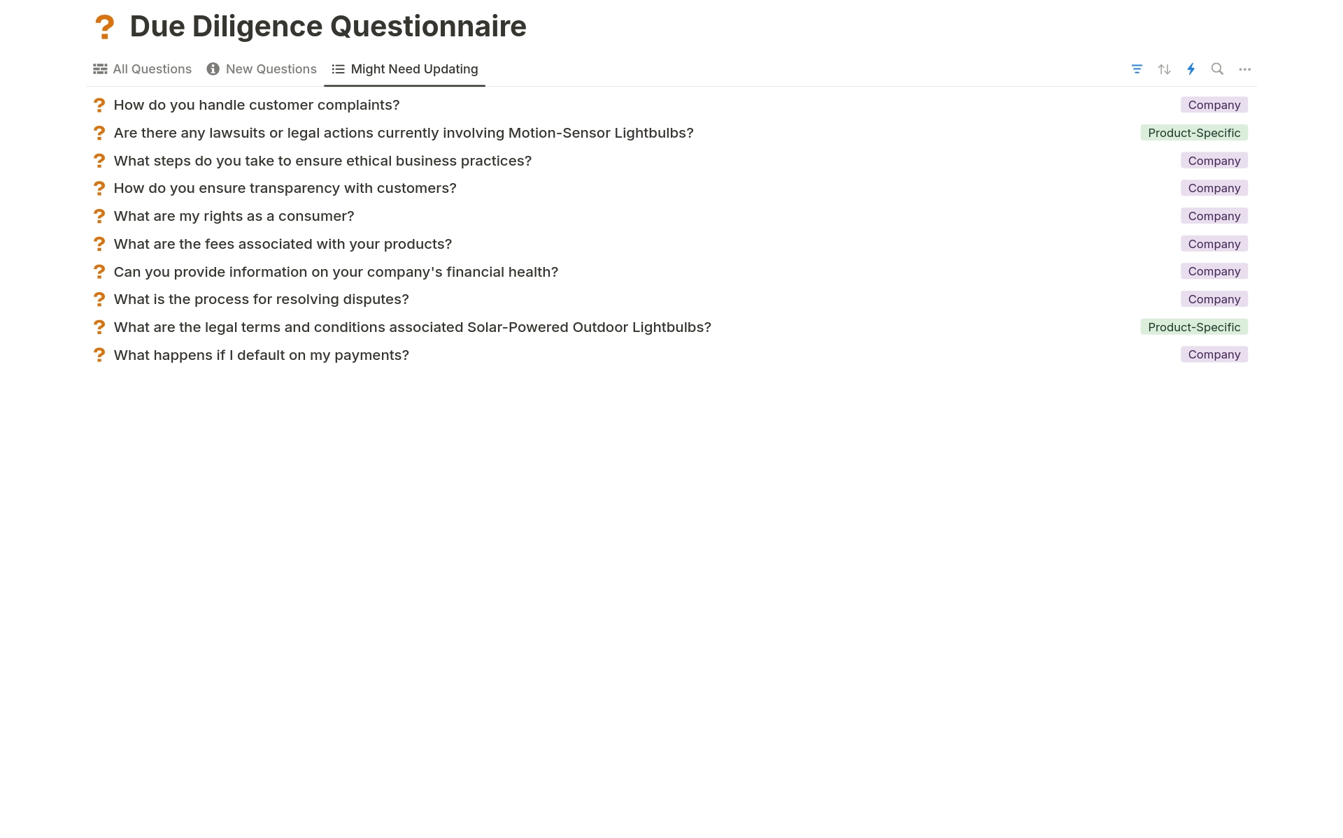 Due Diligence Questionnaire Template by Notion Notion Marketplace