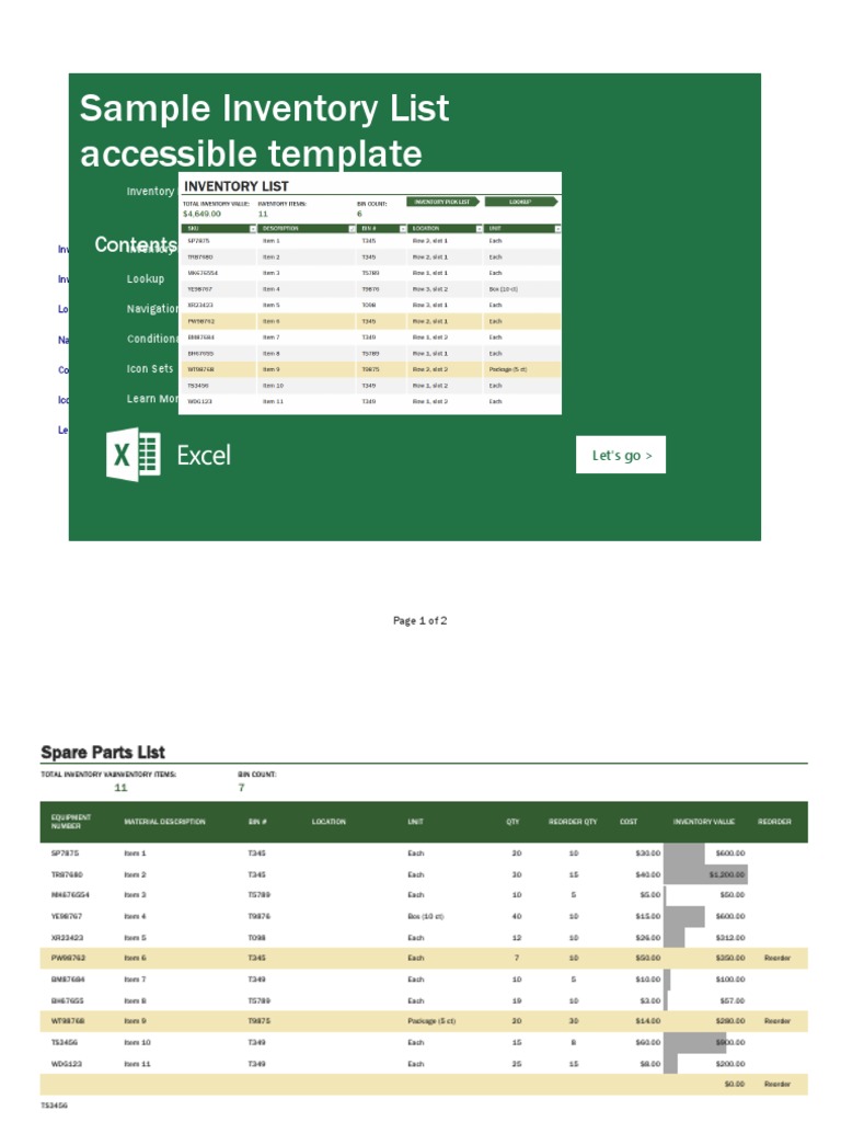 Inventory List Forms Excel Template And Google Sheets File For Free
