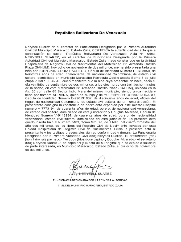Here are some of the images for Venezuelan Birth Certificate that we found in our website database.