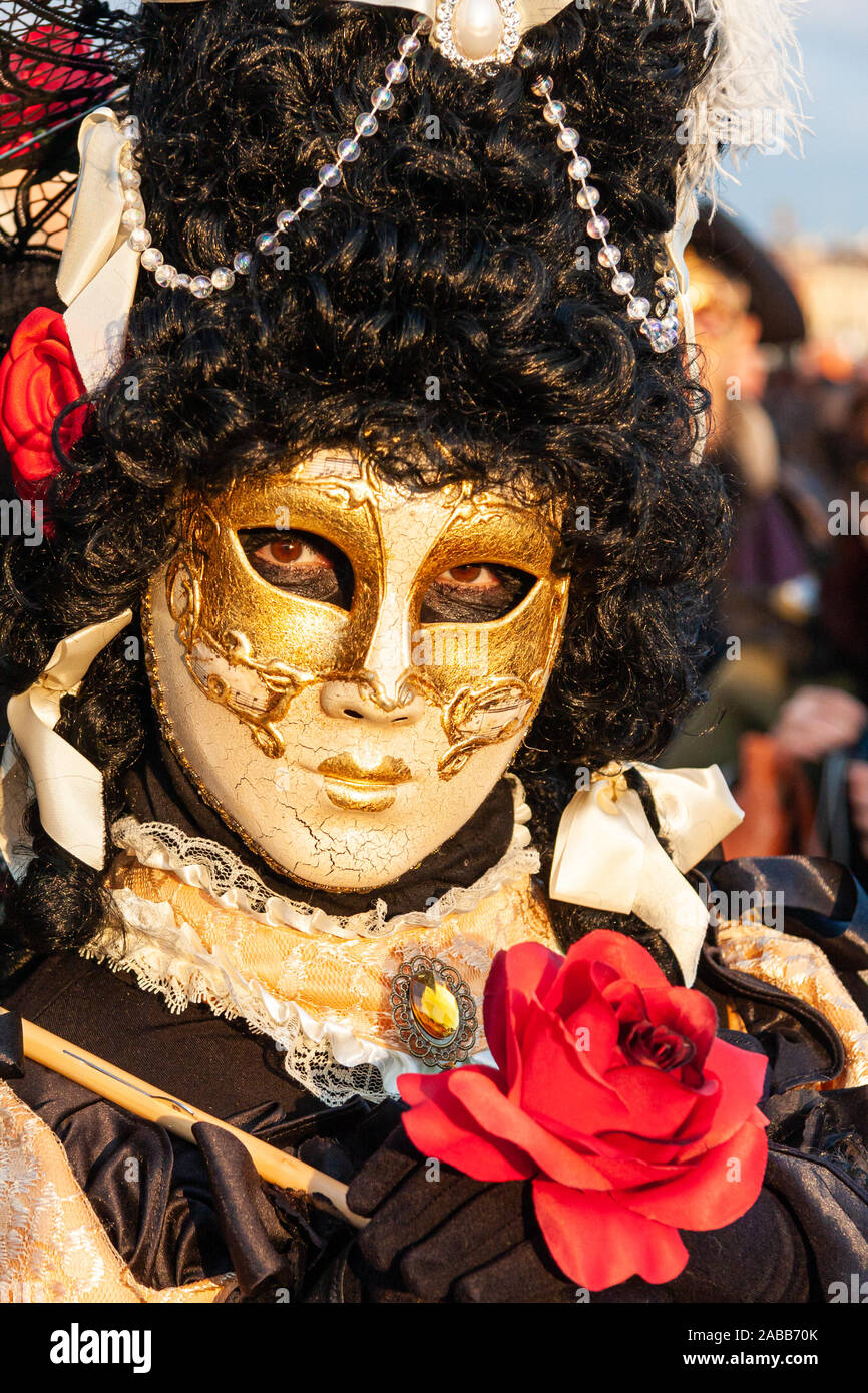 Italy carnival masked costume in gold hi res stock photography and