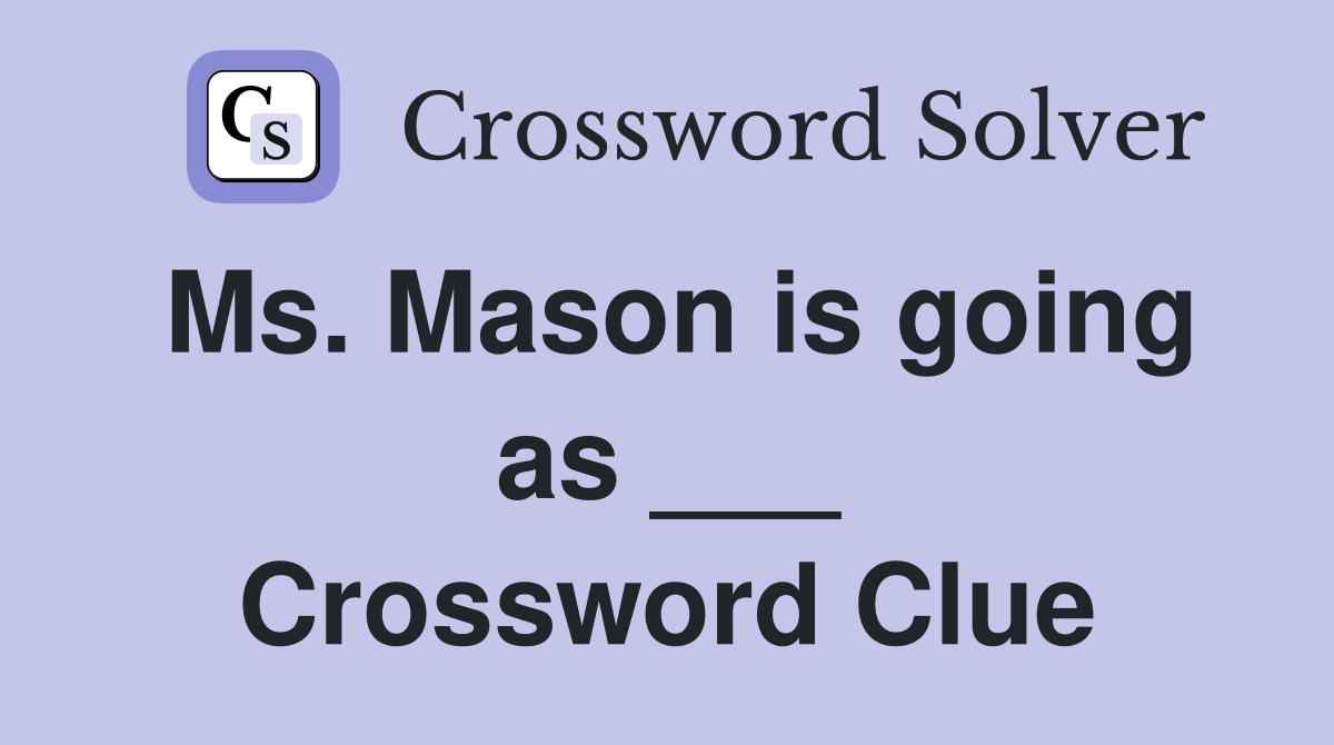 Ms Mason is going as Crossword Clue Answers Crossword Solver