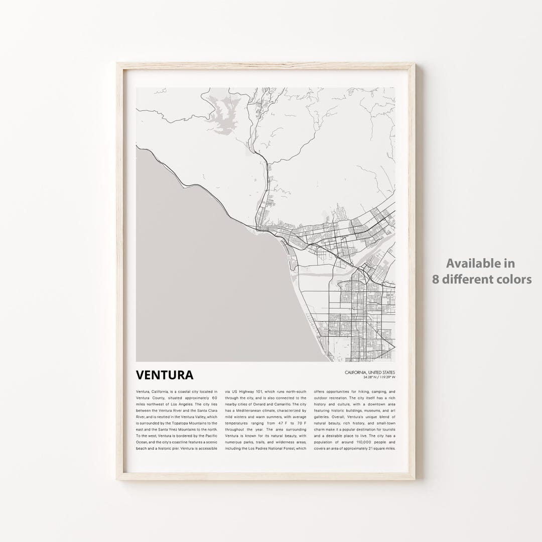 Ventura Map Print Ventura Travel Map Ventura Wall Decor Art Ventura