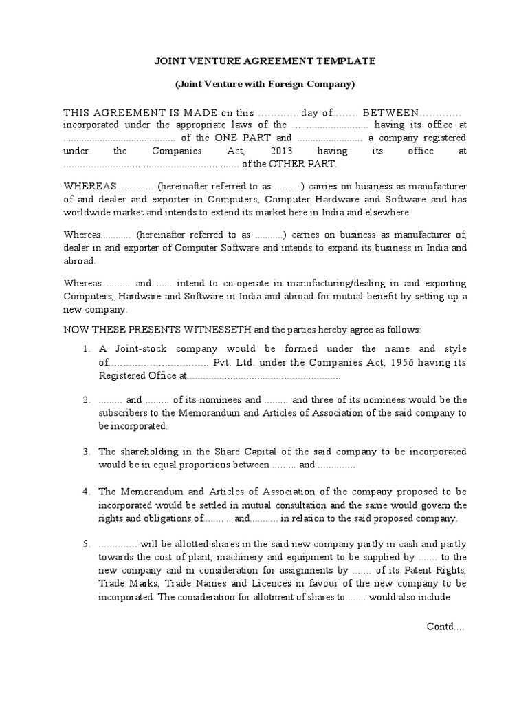 Joint Venture Agreement Template 13 Free Word PDF Document Download