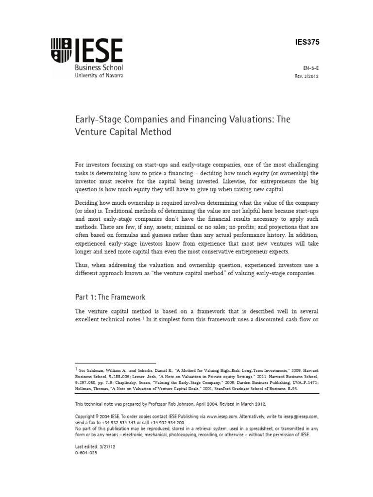 VENTURE CAPITAL METHOD FB pdf $ Venture Capital Financing The Venture