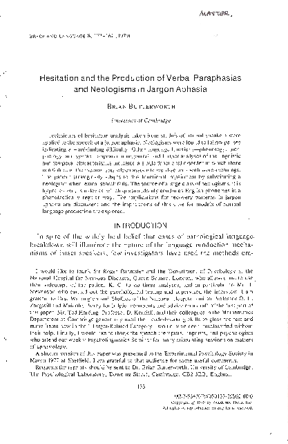 (PDF) Hesitation Effects on Verbal Paraphasias in Jargon Aphasia