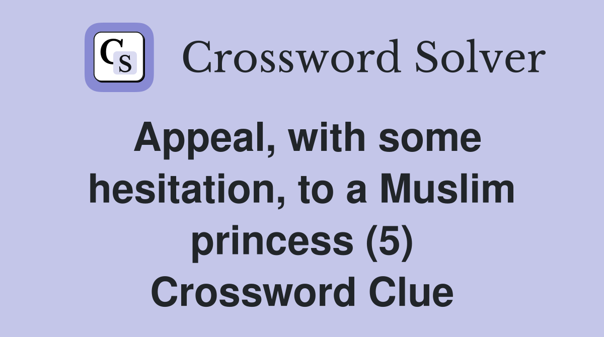 Appeal with some hesitation to a Muslim princess (5) Crossword Clue
