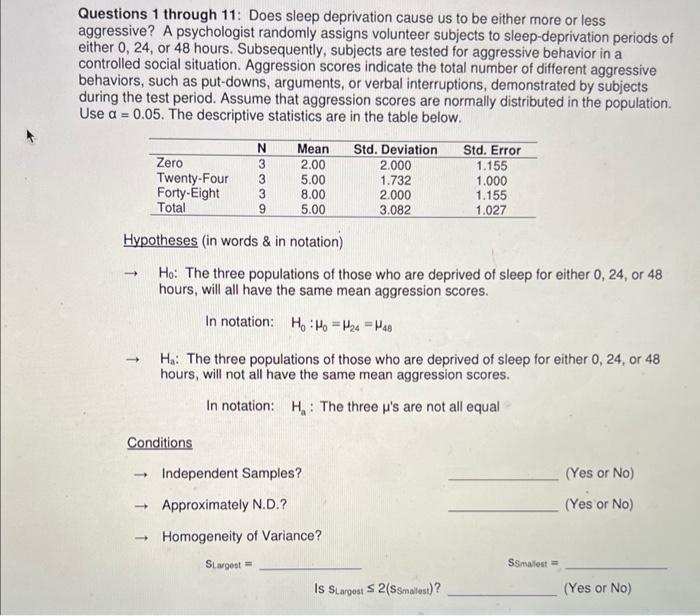 Solved Questions 1 through 11: Does sleep deprivation cause Chegg com
