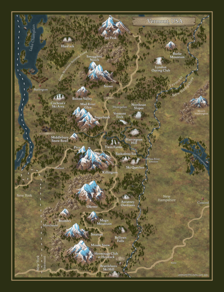 2023 VT Ski Resorts Map Print First Print Run Poster