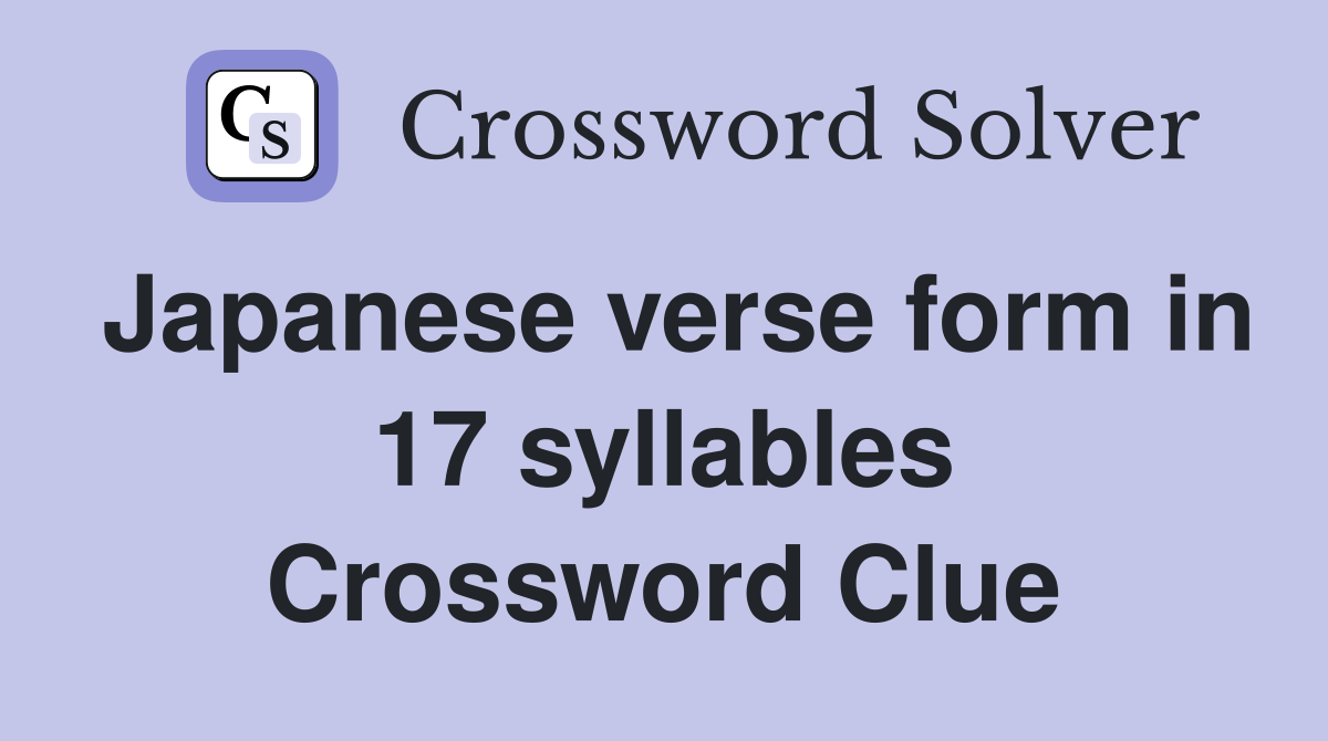 Japanese verse form in 17 syllables Crossword Clue Answers