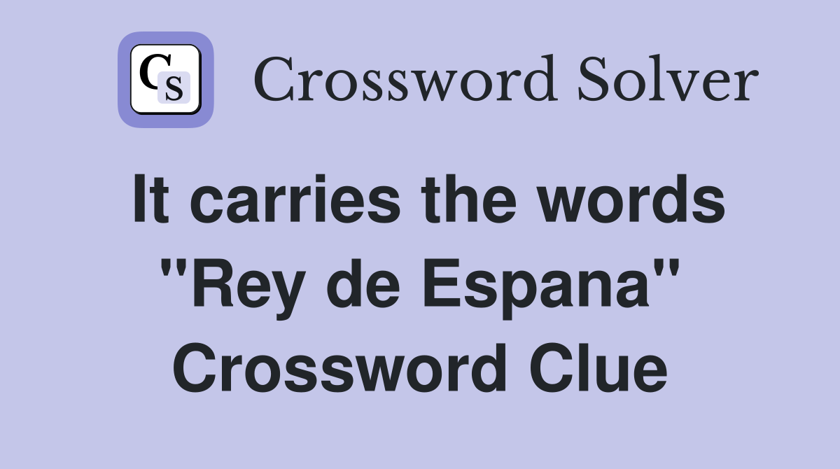 It carries the words quot Rey de Espana quot Crossword Clue Answers