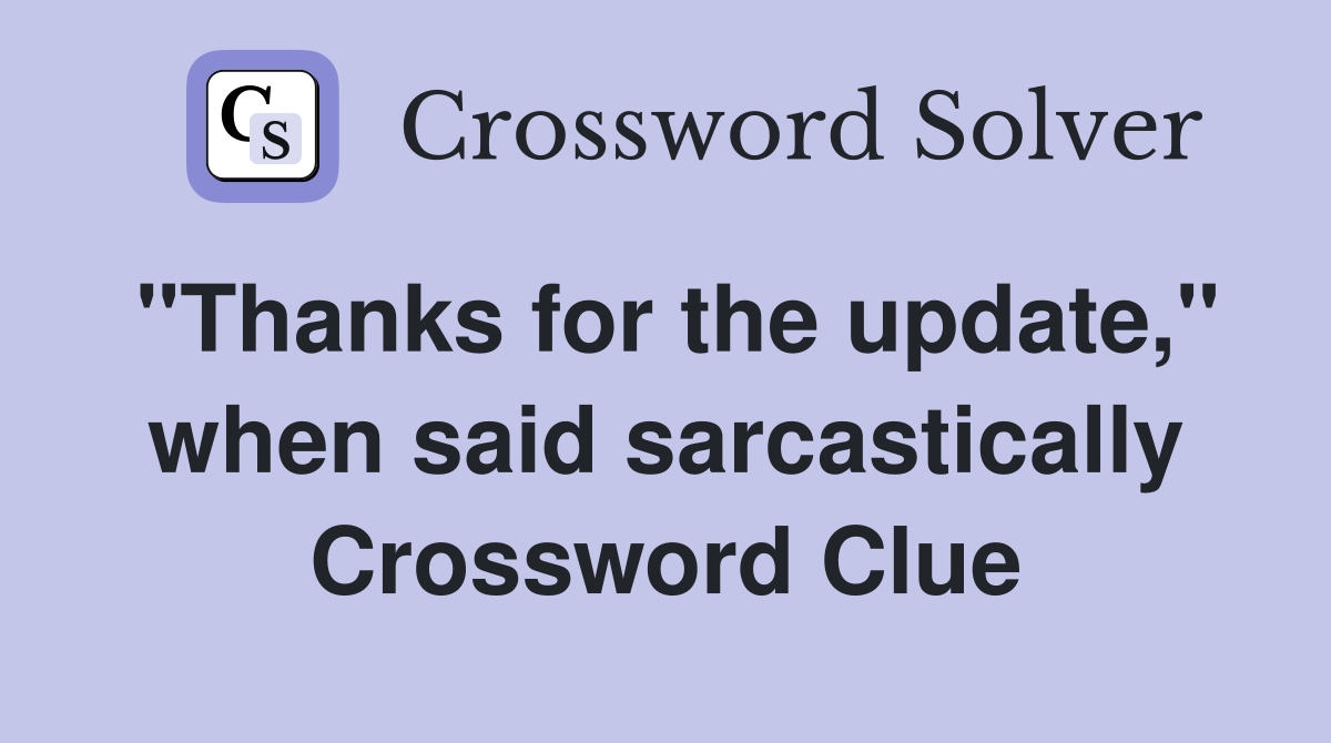 quot Thanks for the update quot when said sarcastically Crossword Clue