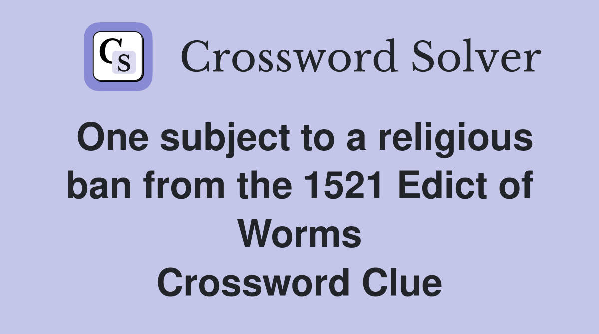 One subject to a religious ban from the 1521 Edict of Worms Crossword