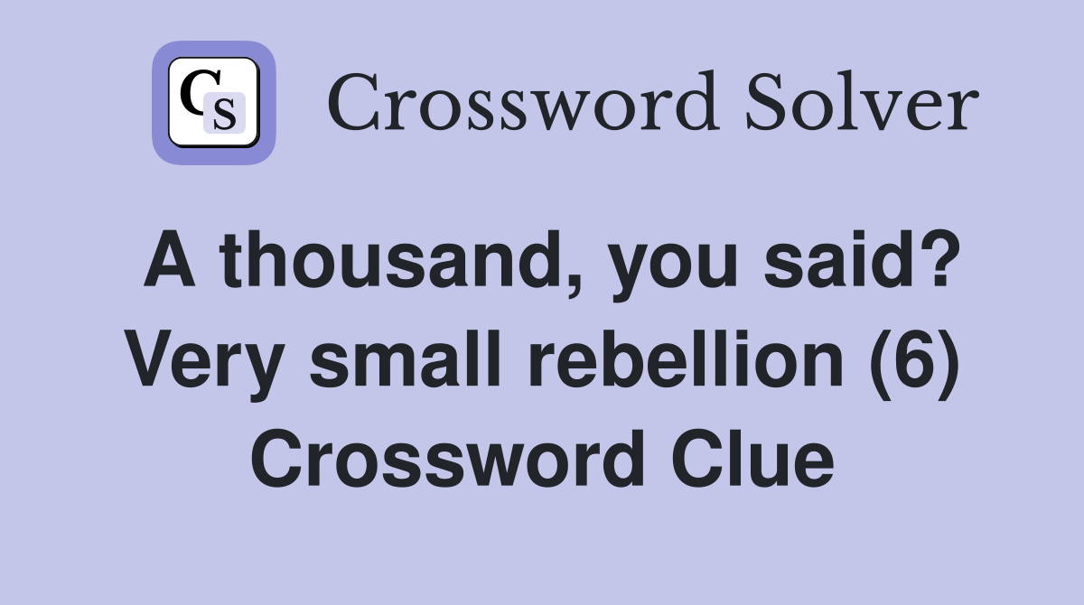 A thousand you said? Very small rebellion (6) Crossword Clue Answers
