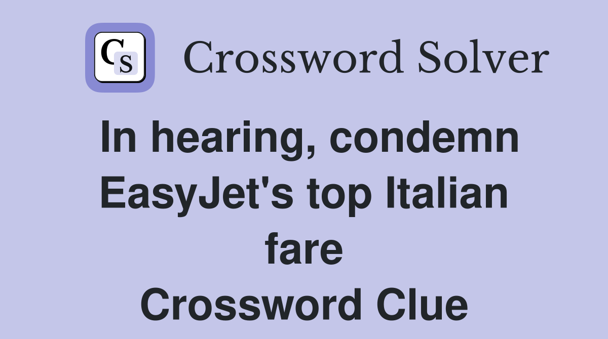 In hearing condemn EasyJet #39 s top Italian fare Crossword Clue Answers