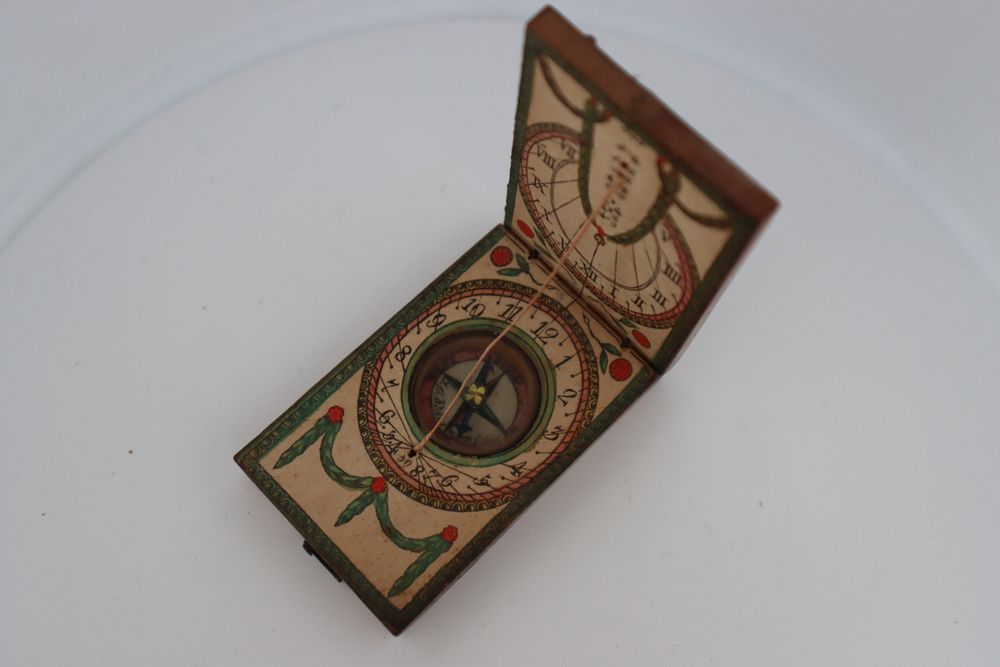 Very Rare Antiker Kompass / Sonnenuhr Handbemalt 18/19 Jht (D