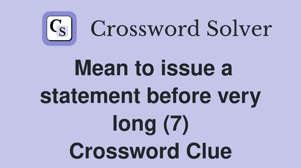 Mean to issue a statement before very long (7) Crossword Clue Answers