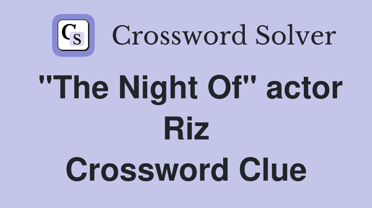 quot The Night Of quot actor Riz Crossword Clue Answers Crossword Solver