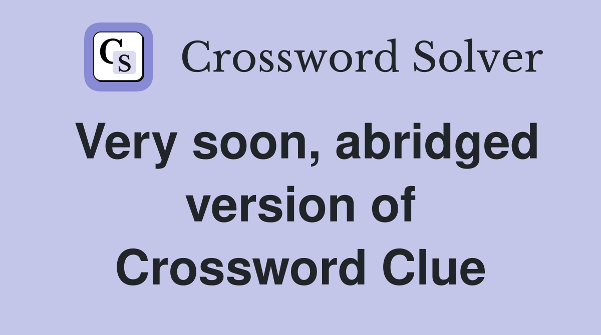 Here are some of the images for Very Soon Crossword Clue that we found in our website database.