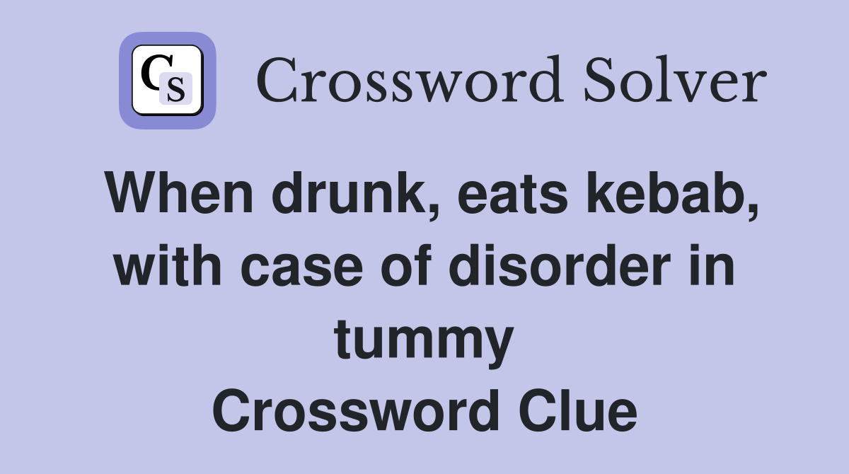 When drunk eats kebab with case of disorder in tummy Crossword Clue