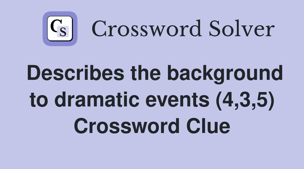 Describes the background to dramatic events (4 3 5) Crossword Clue