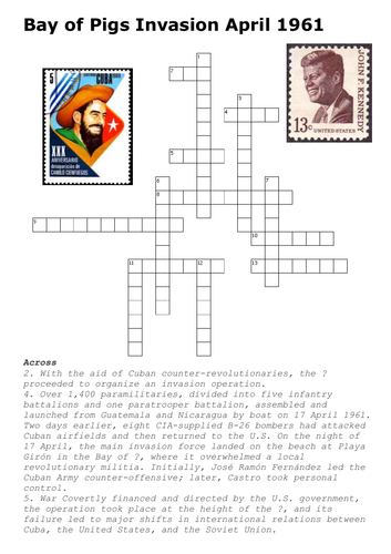 The Bay of Pigs Invasion Crossword Teaching Resources
