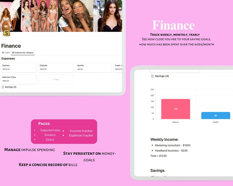 Victoria Secret Model Notion Planner Template Victoria Secret Planner