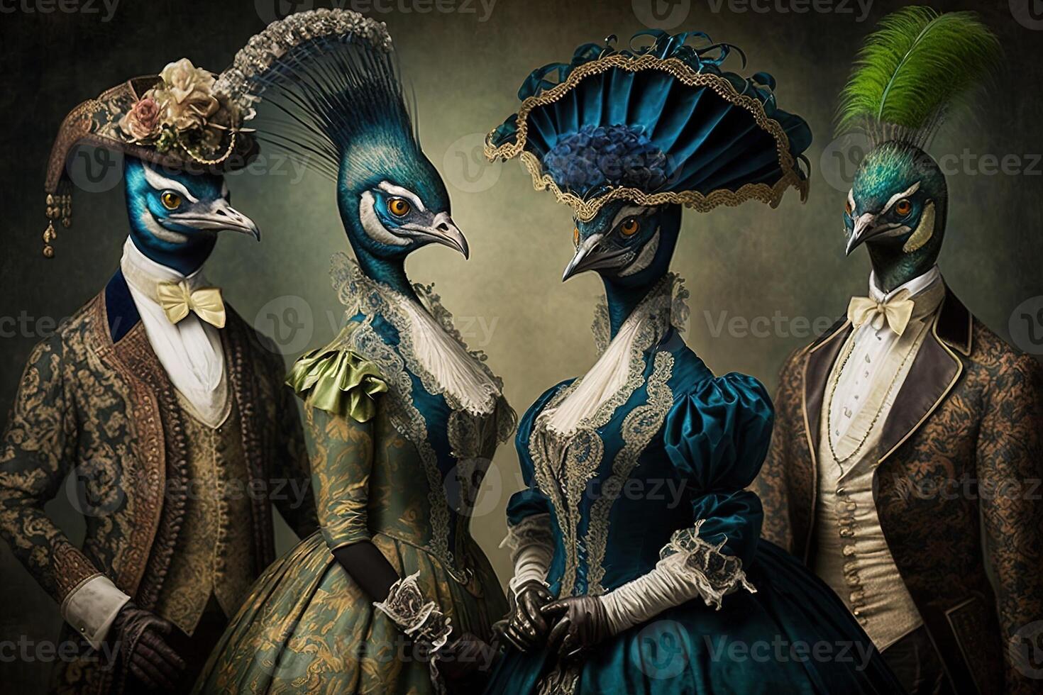 Peacock animals dressed in victorian era clothing illustration 23946402