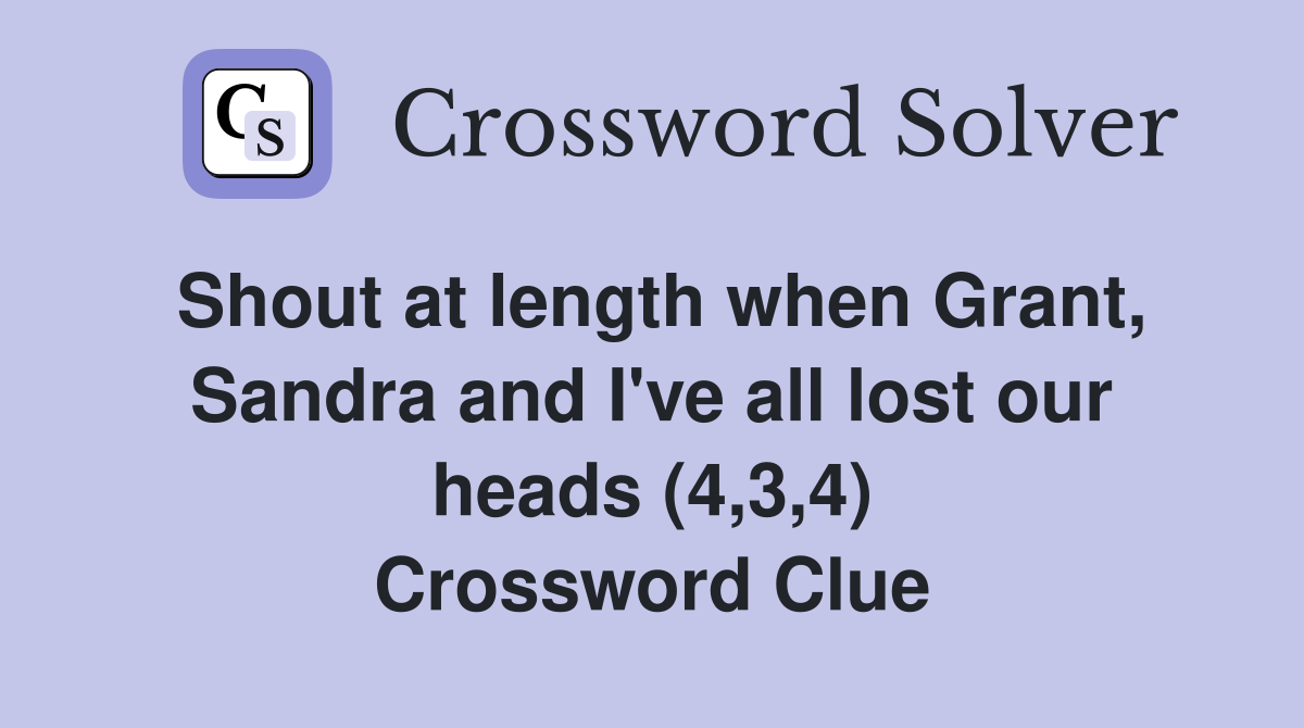 Shout at length when Grant Sandra and I ve all lost our heads (4 3 4