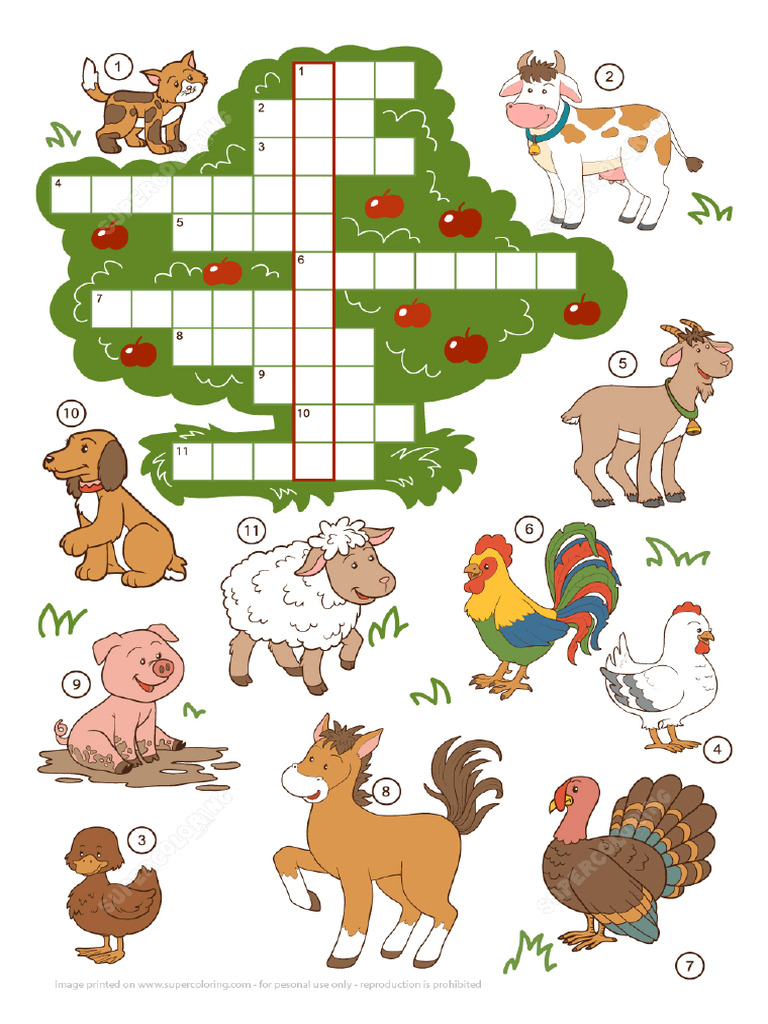 Farm Animals Crossword Puzzle For Beginners Puzzle Games PDF