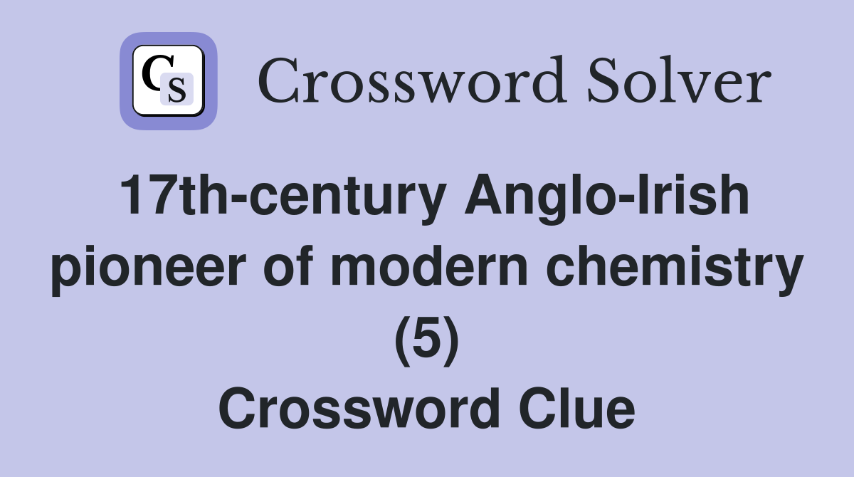 17th century Anglo Irish pioneer of modern chemistry (5) Crossword