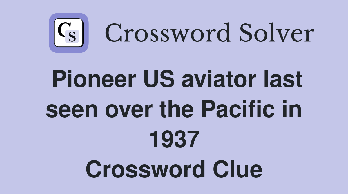 Pioneer US aviator last seen over the Pacific in 1937 Crossword Clue