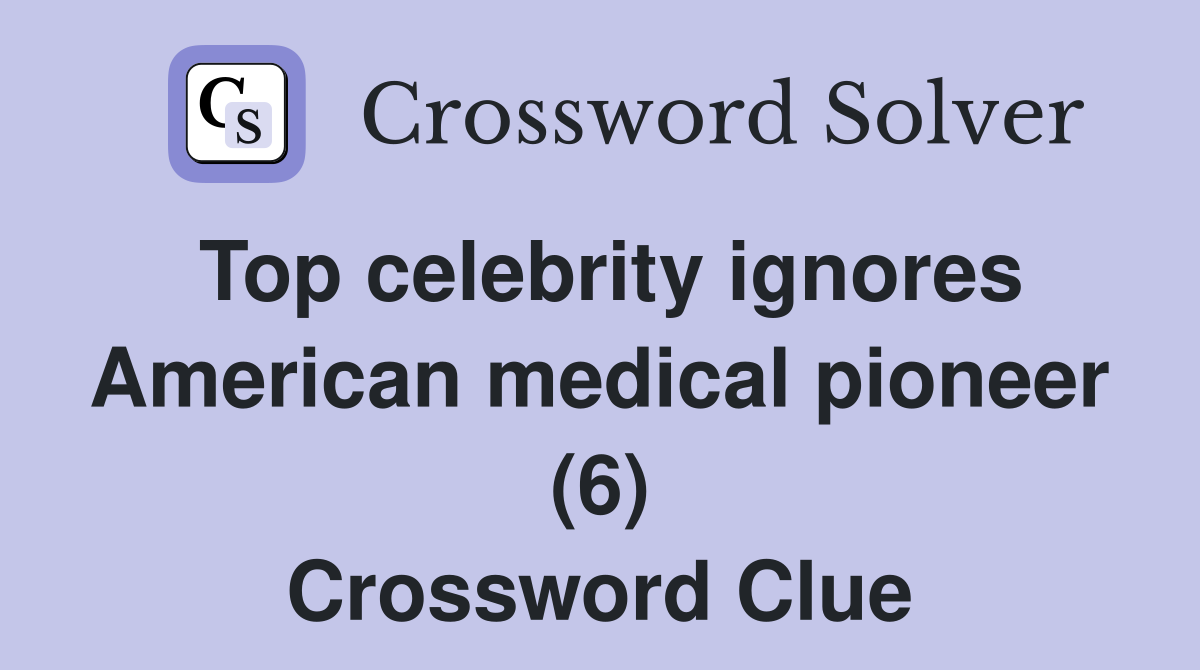 Top celebrity ignores American medical pioneer (6) Crossword Clue