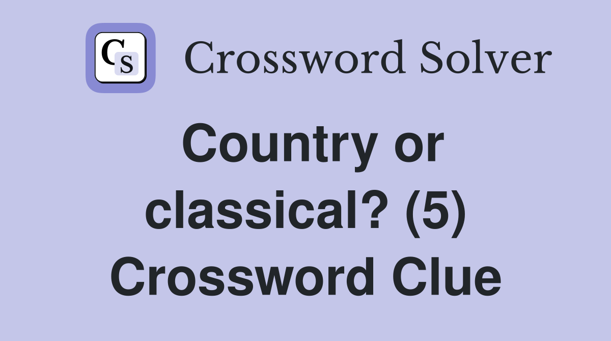 Country or classical? (5) Crossword Clue Answers Crossword Solver