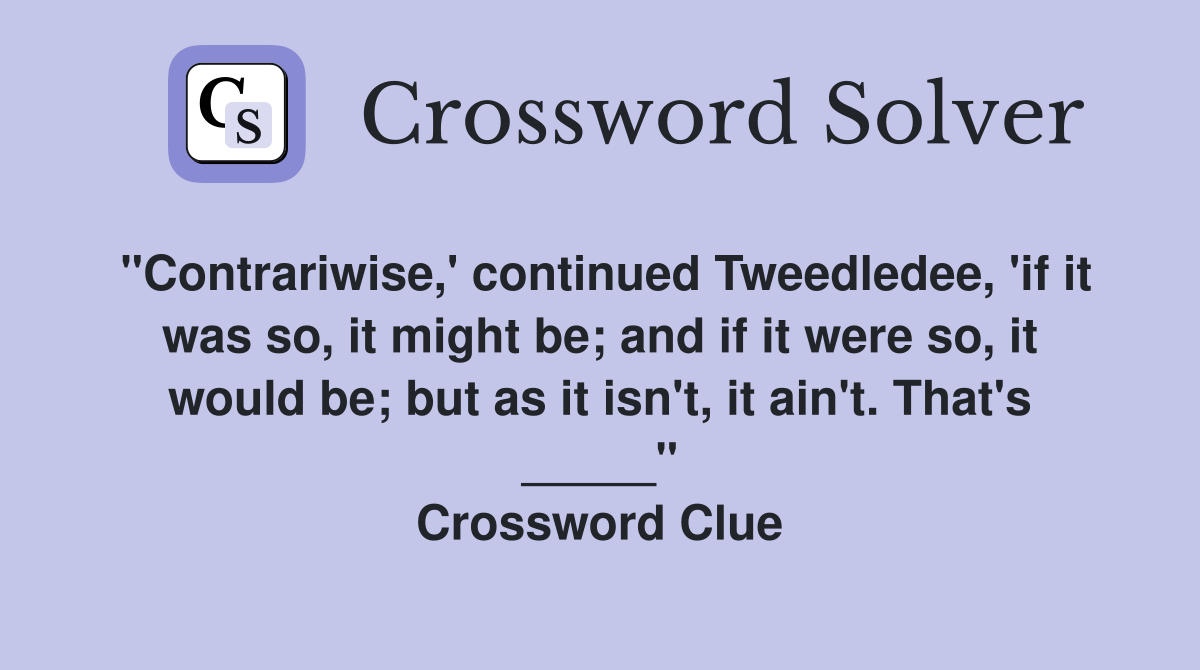 quot Contrariwise #39 continued Tweedledee #39 if it was so it might be and