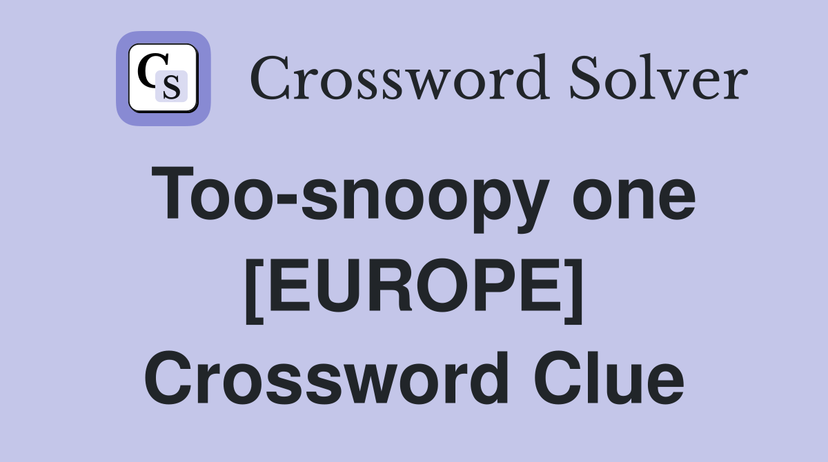 Too snoopy one EUROPE Crossword Clue Answers Crossword Solver