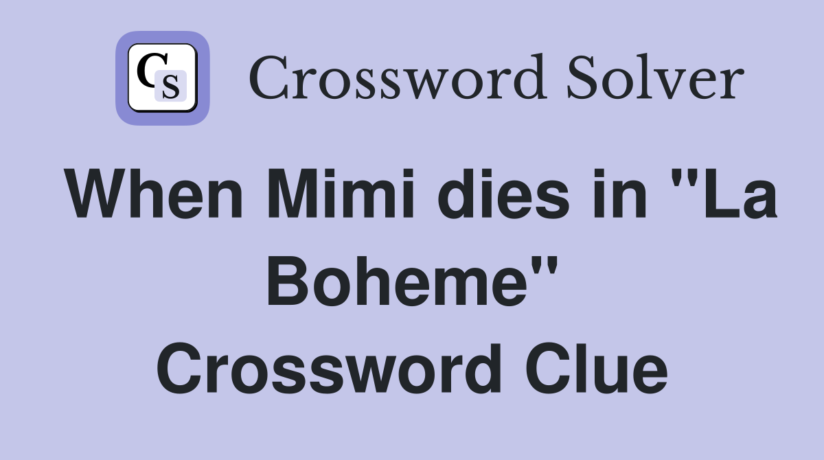 When Mimi dies in quot La Boheme quot Crossword Clue Answers Crossword Solver