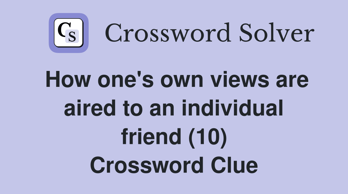 How one #39 s own views are aired to an individual friend (10) Crossword
