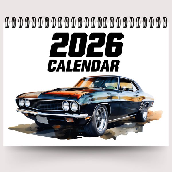 Vintage Old Car Printable Calendar 2025 Retro Automotive A6 Monthly