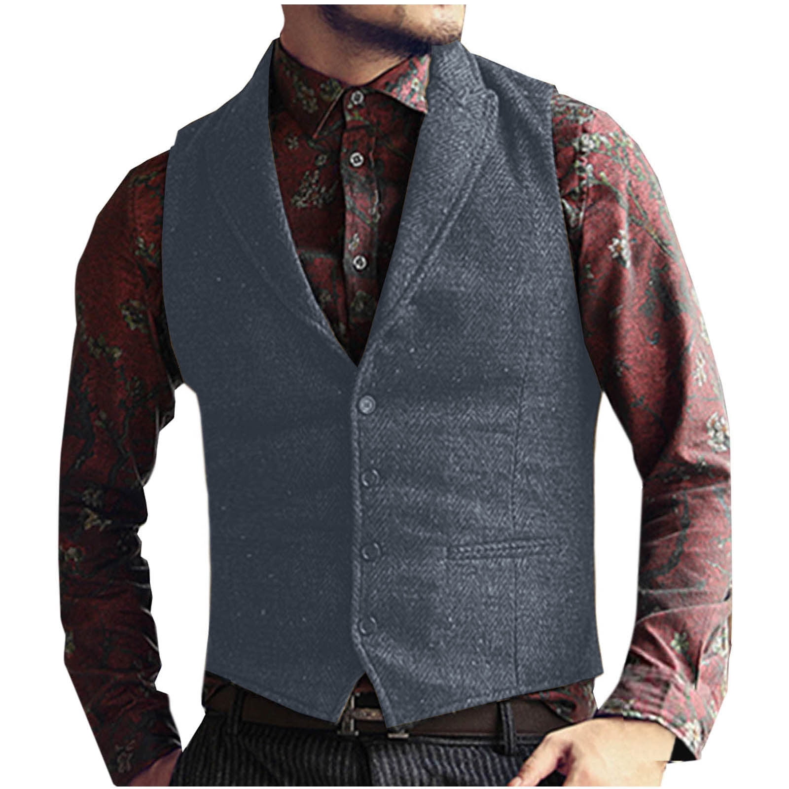BSDJILFG Vintage Suit Vests for Men Single Breasted Western Dress Vests