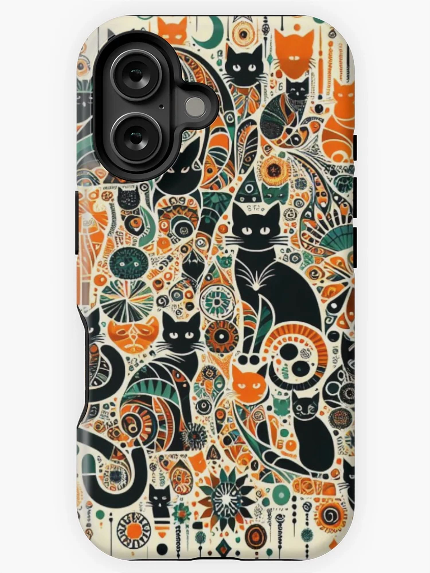 Beautiful Cats Vintage Mosaic Artistic Style Case for iPhone 16 15 14