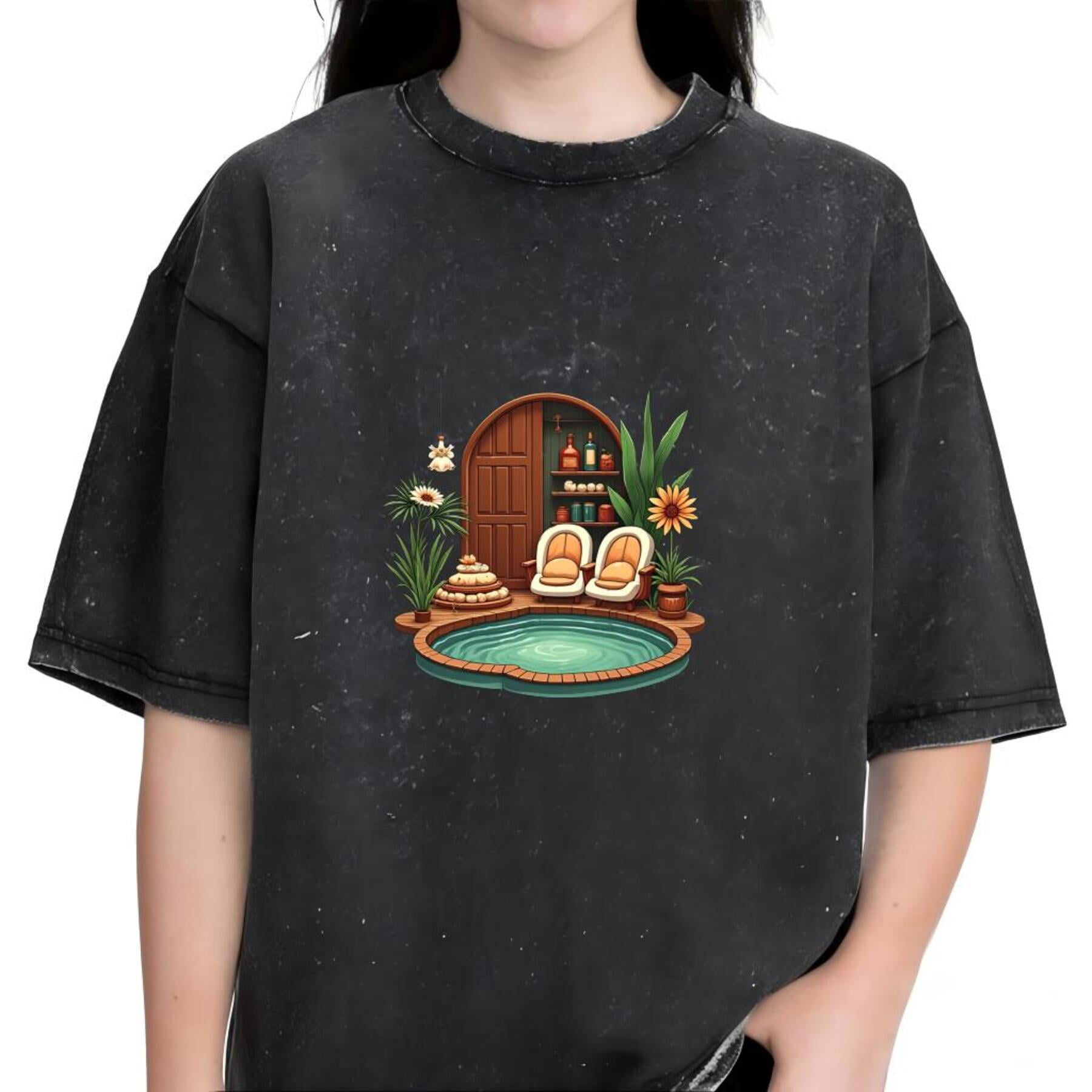 Cotton Vintage Washed Short Sleeve T Shirt for Women Cozy Outdoor