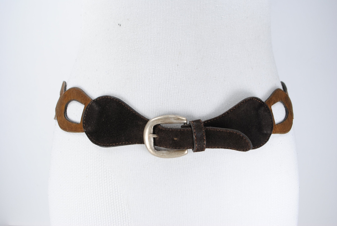 Brown Suede Belt 70s Vintage Hip Belt Women Chocolate Brown Beige
