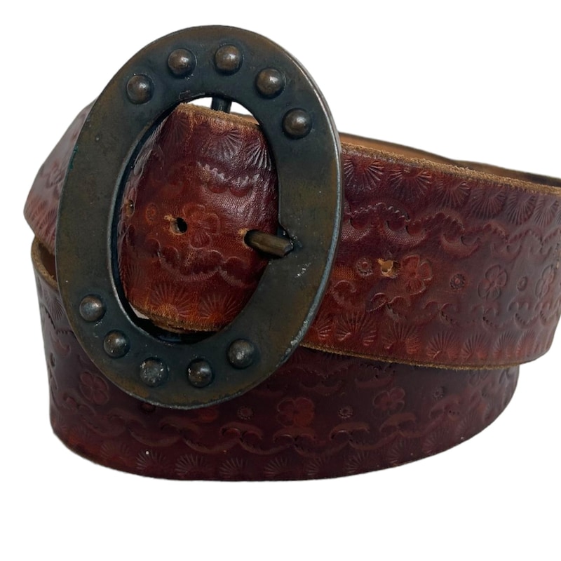 1970s Mens quot elwood quot Tooled Leather Belt With Lucky Charm Buckle Etsy