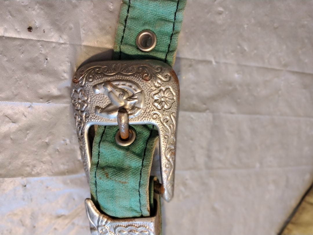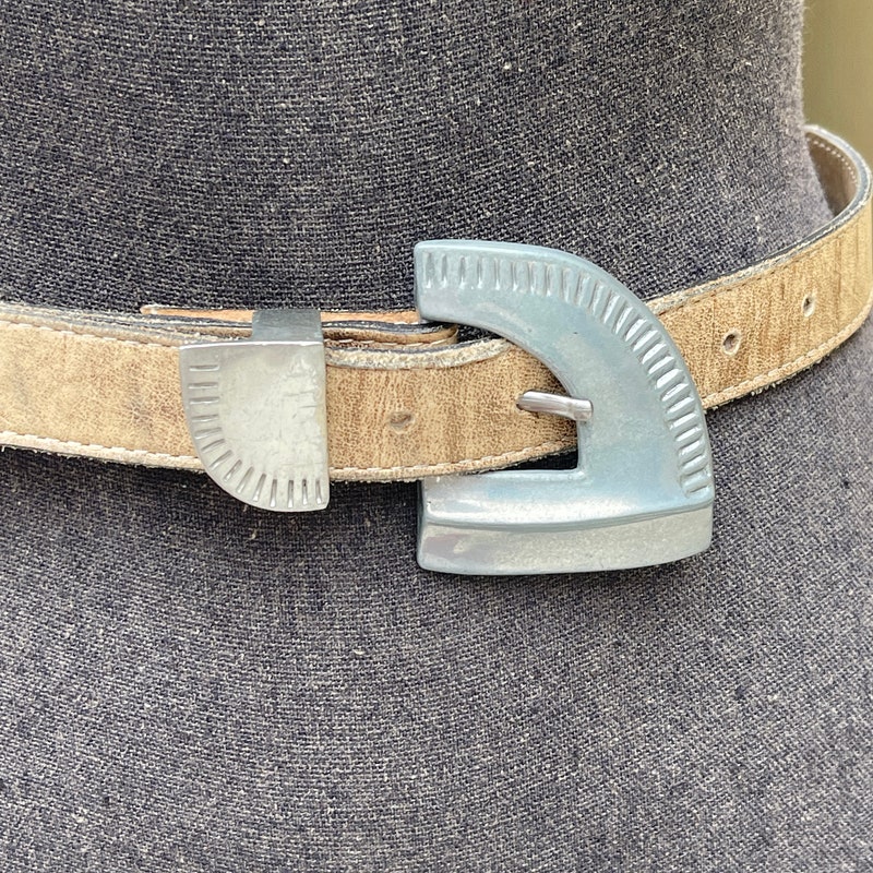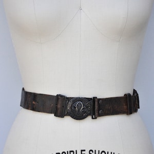 Green leather belt / vintage Cumbres Toltec Buckle rustic Etsy