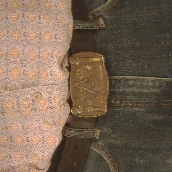 Vintage 70s Brown Leather Belt by Remington Peters 1970s Brass