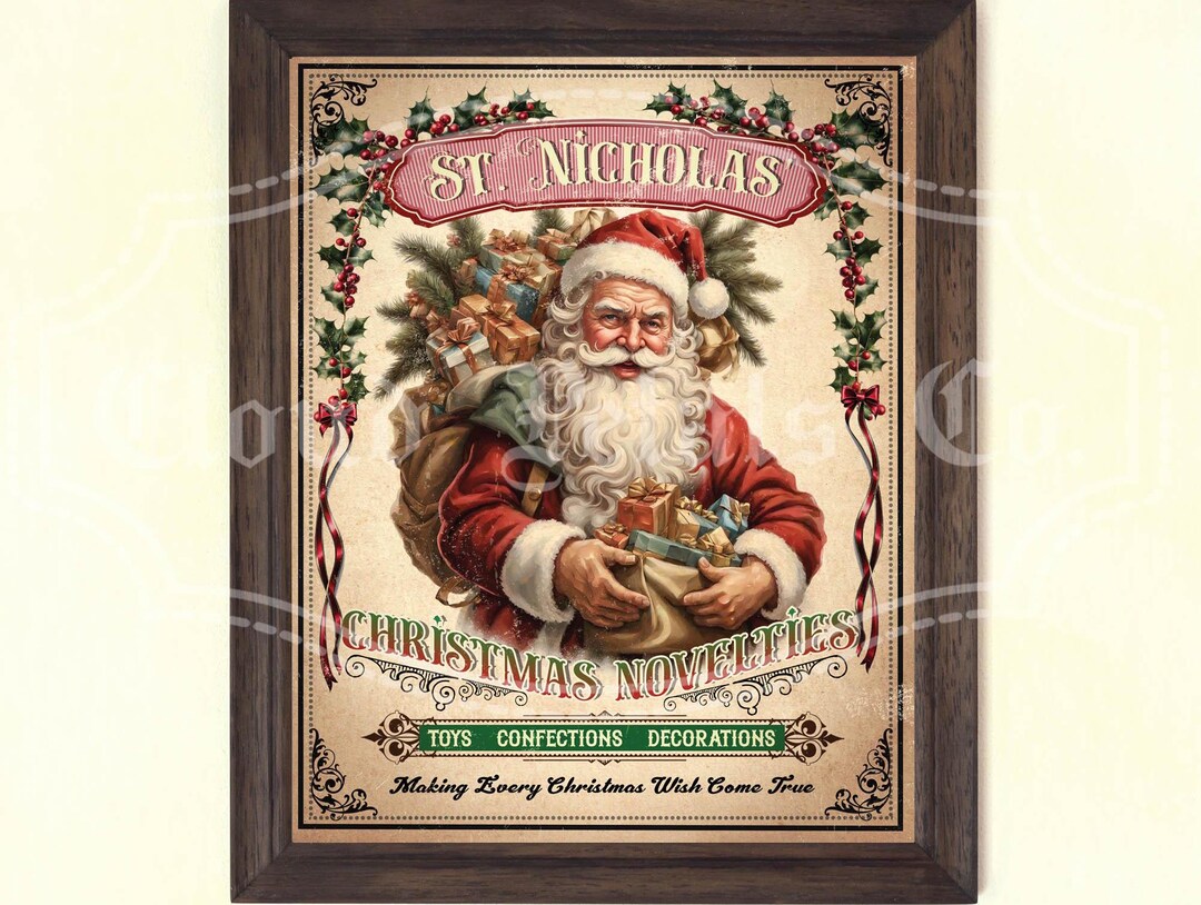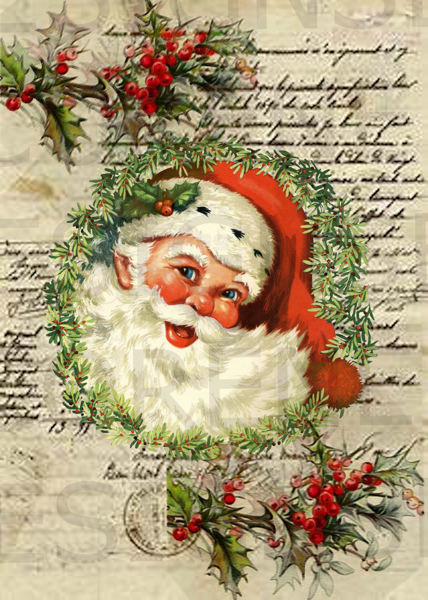 Vintage Santa Claus Christmas Decor Digital Printable Rustic Wall Art