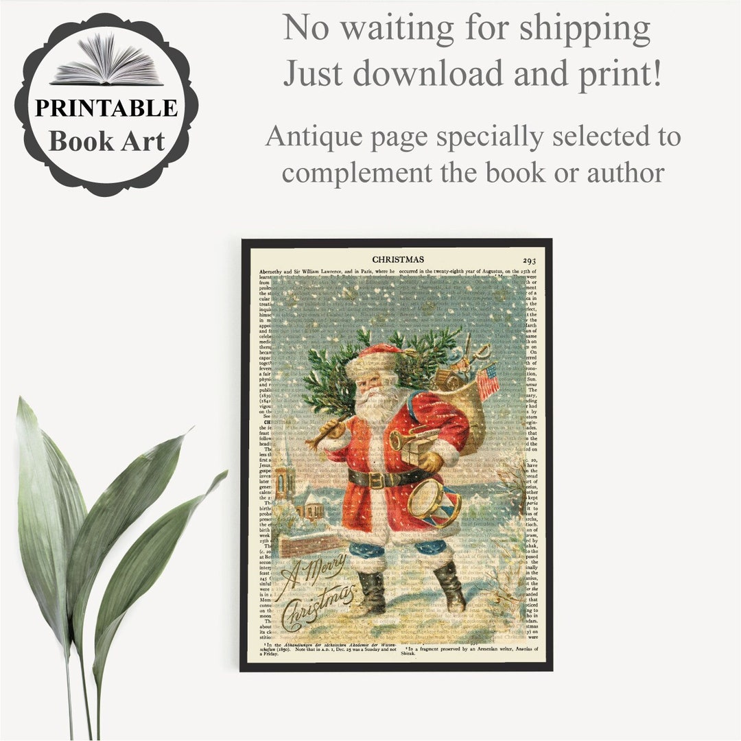 Printable Vintage Santa Claus Art Print on Old christmas Page