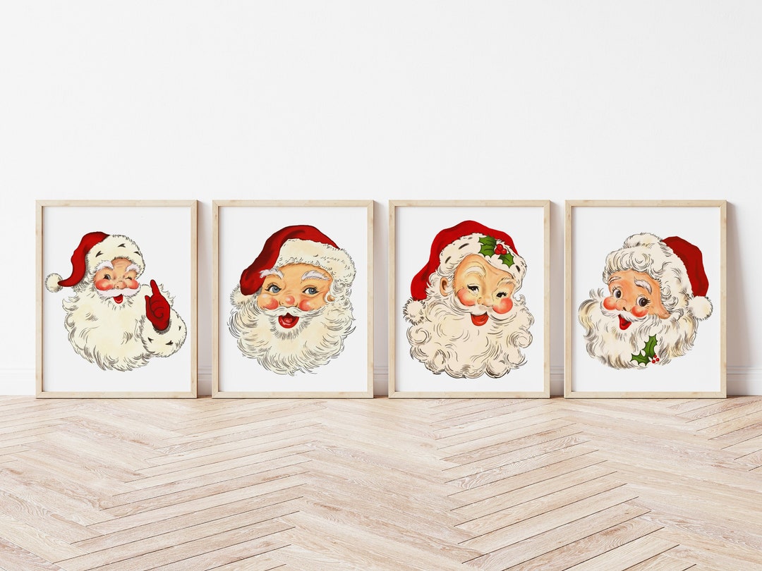 Set of 4 Santa Claus Vintage Wall Art Santa Claus Christmas Printables